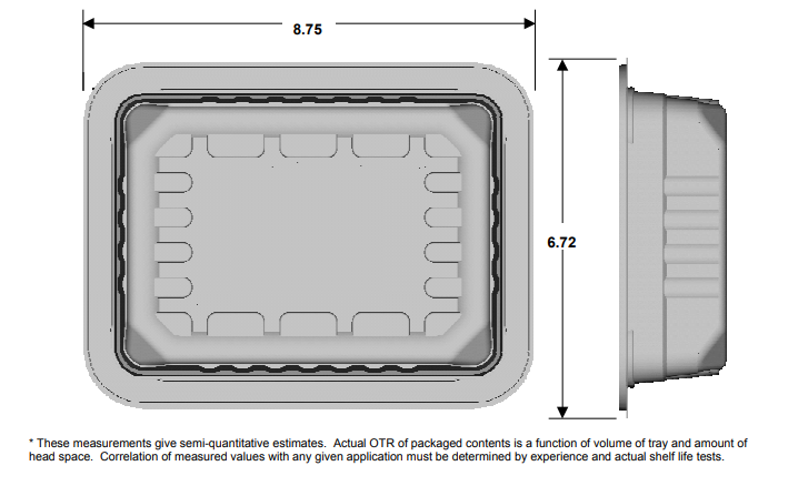 Oxygen Transmission Rate (@73 deg F and 0% RH): 0.1 cc to 1cc / tray / 24 hours