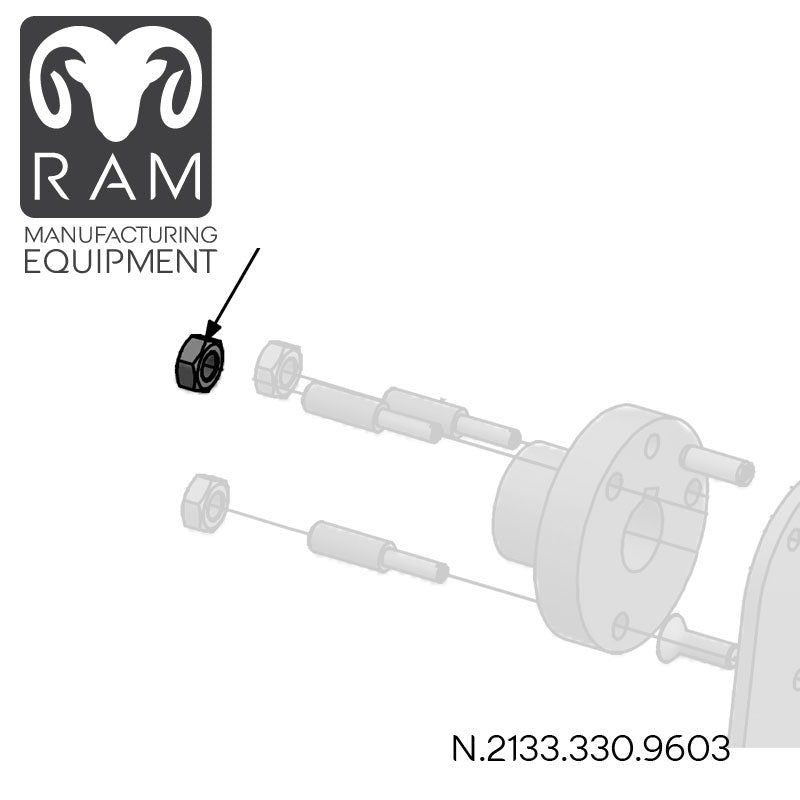Due to constantly changing material costs, freight costs, and tariffs please add this item to your shopping cart, along with any other parts you'd like a quoted, and checkout to get an up to date quote and lead time. This MHS Schneidetechnik Hexagonal Nut Part #: N.2133.330.9603 is compatible with MHS 850-90, 1000-90, 1000-96 Dicers. RAM Equipment is the main MHS distributor for equipment and parts in the USA, with many of these parts in stock. If a part is not in stock the usual lead time is about 1-2 weeks. If you have questions call us at (951) 734-8152 and we'd be happy to help. Note: This part is also compatible with similar Foodlogistik dicers as well.